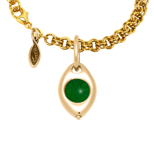 This elegant 5 Peas in a Pod Charm would make a meaningful gift for your best friend, mom, sister, bridesmaid, or partner: anyone who you consider the other pea in your pod! The peapod-shaped silver or 14k gold charm is set with five freshwater pearls or gemstone ‘peas’ to represent each person. The stunning pearls are custom dyed to match each month’s birthstone. The charm can be purchased alone, with a necklace chain, or with a twin cable heirloom charm bracelet.