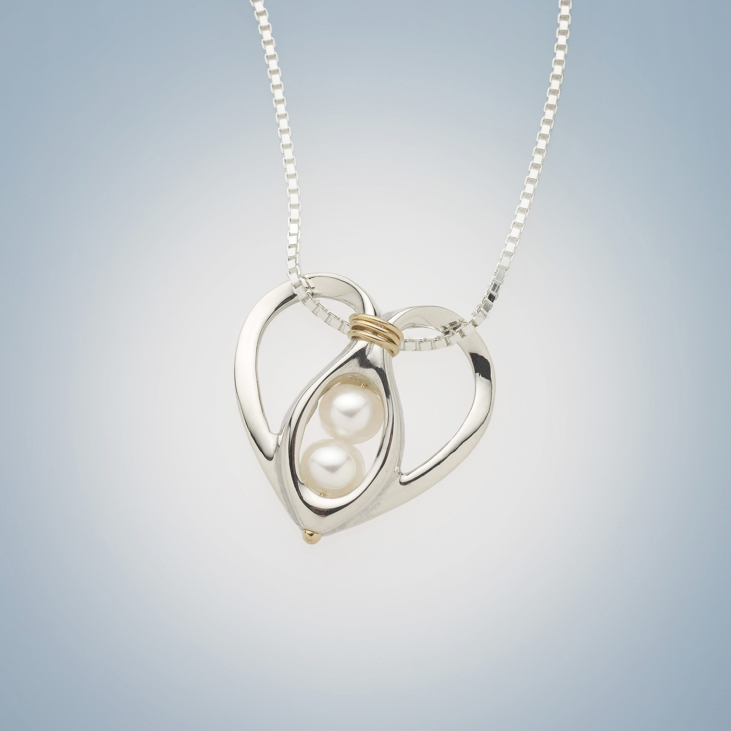 Show your sweetheart how much you care with a gift of our stylish and sophisticated 2 Peas Heart Peapod Necklace. Our stunning necklace features two of our iconic pearl or gemstone “peas.” To personalize your design, choose from a variety of different gemstone shades, including your birthstone. Wear the pendant with our modern box chain, and choose from several lengths, including 16”, 18”, 20”, 22″, and 24”. Available in 925 sterling silver or 14k yellow gold with an 18k yellow gold accent.