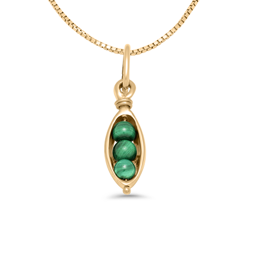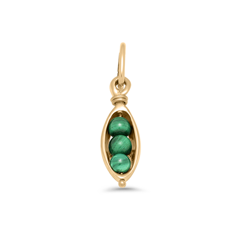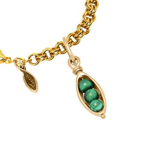 Our 3 Peas in a Pod Petite Charm is a whimsical piece made from brilliant sterling silver or 14k gold and featuring three lustrous malachite “peas.” The three “peas” can represent anything from three children to a third wedding anniversary or simply three best friends. Wear the 3 Peas in a Pod Petite Charm with pride on our Twin Cable Heirloom Charm Bracelet or a Box Chain Necklace.