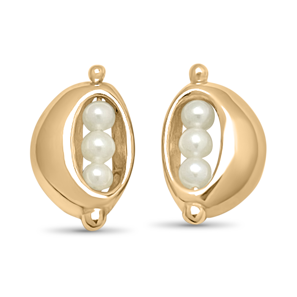 Our Baby Bean Peapod Earrings are a cute and stylish addition to any outfit and are suitable for formal and casual occasions. Handcrafted from our luxury sterling silver or 14k gold and featuring three of our iridescent white pearl “peas,” our Baby Bean Peapod Earrings are a more delicate and petite version of our Bean Pods. Presented in a modest yet classy post style, each earring is ½” long and makes an elegant statement.