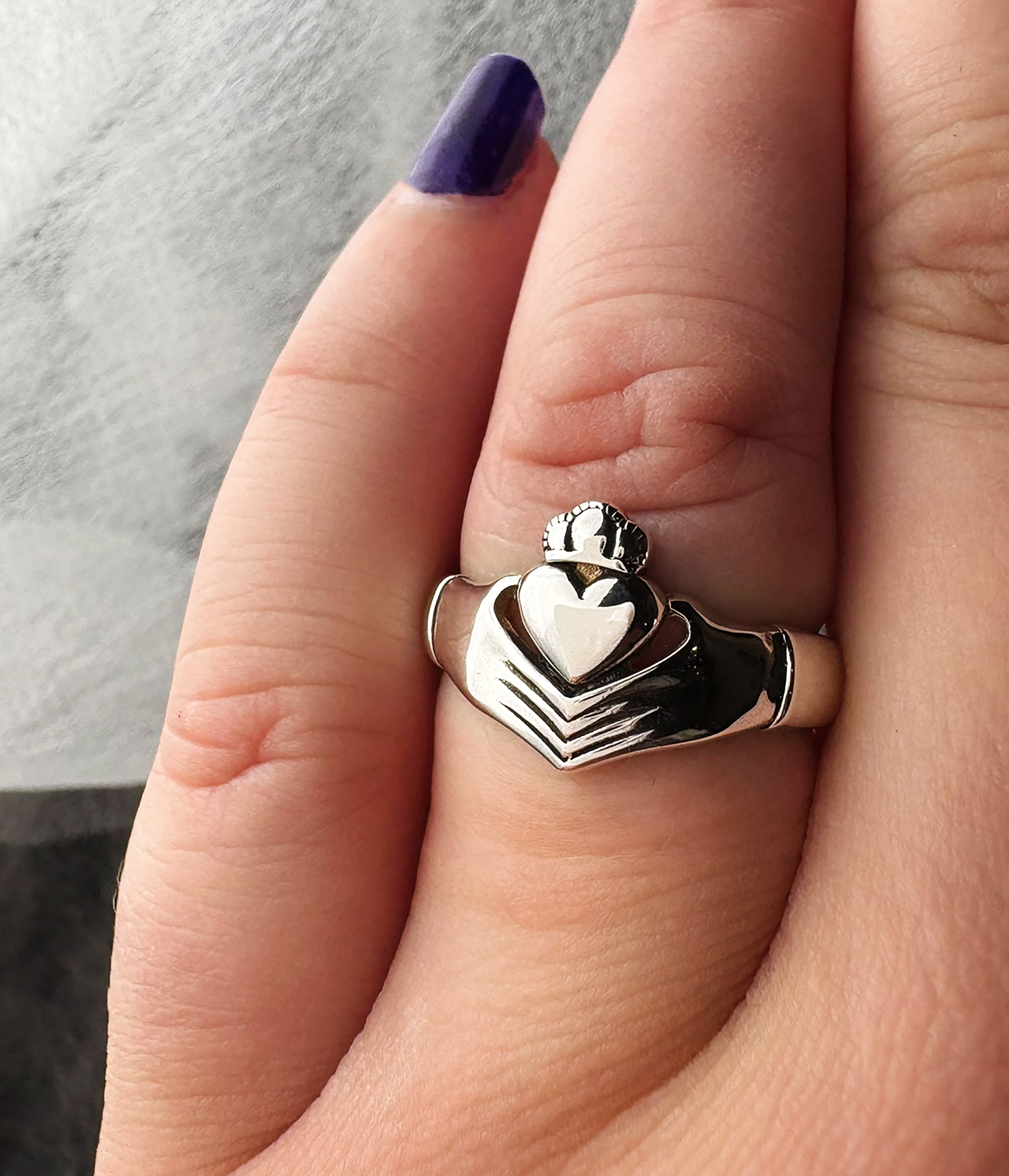 Within a gleaming band of sterling silver resides more than mere adornment; a Claddagh ring embodies the sacred triad of affection, faithfulness, and camaraderie. Birthed in the mystical hamlet of Claddagh in Galway, Ireland, this emblematic ring cradles a heart betwixt two hands crowned in regal splendor. Friendship clasped by hands, love embraced by the heart, and loyalty crowned in majesty. The placement of this enchanted ring on fingers or its orientation whispers tales of nuanced meanings. Adorning the right hand with the heart gazing outward signals readiness for love’s dance. Conversely, when the heart gazes inward, it proclaims a heart already entwined. On the left hand, an outward-facing heart heralds betrothal, while an inward gaze signifies the union of souls in marriage. Whether worn to honor one’s Irish lineage, to cherish a bond dear to the heart, or simply to grace one’s hand with elegance, the Claddagh ring stands as a beacon of enduring significance and timeless beauty.
