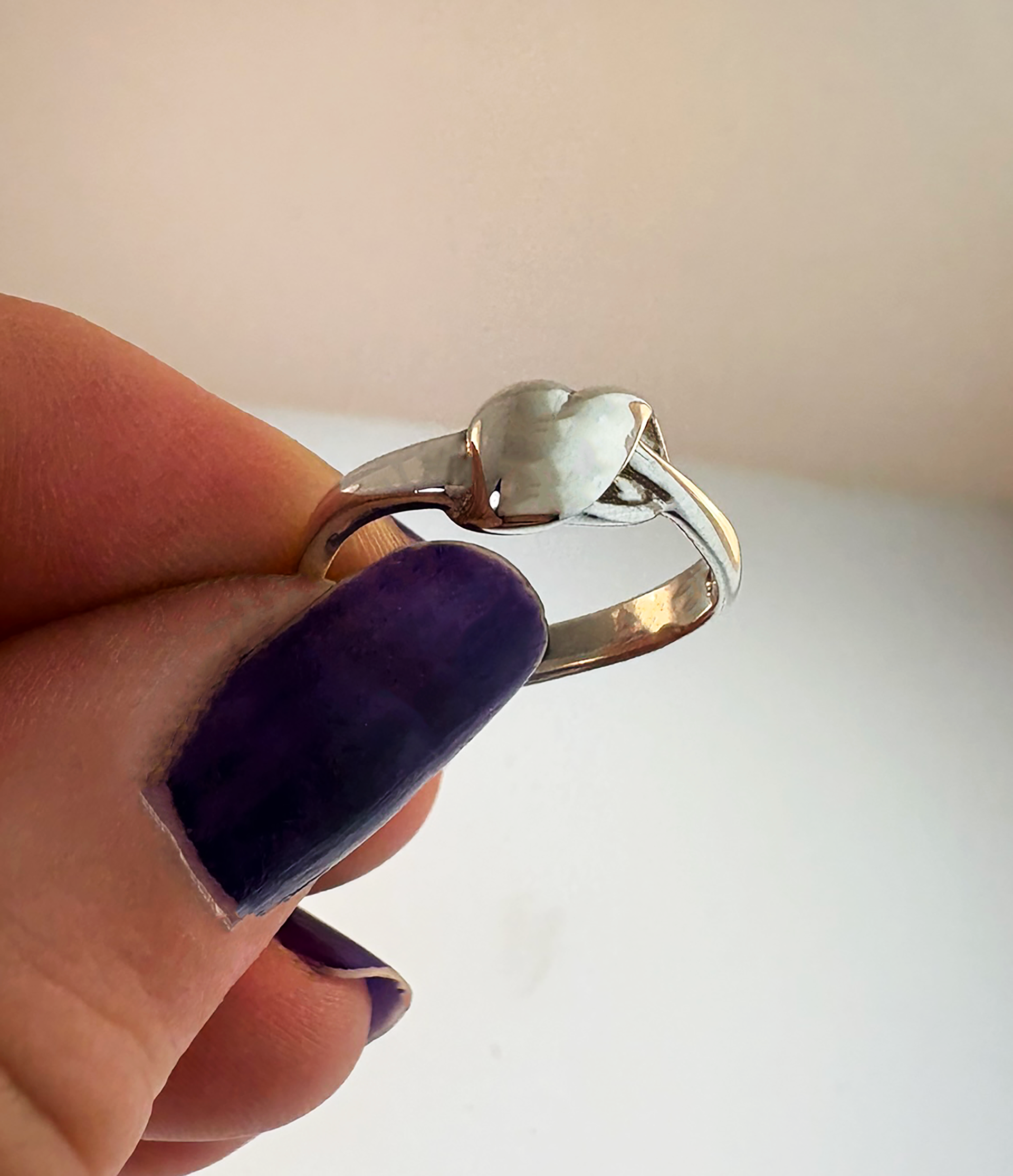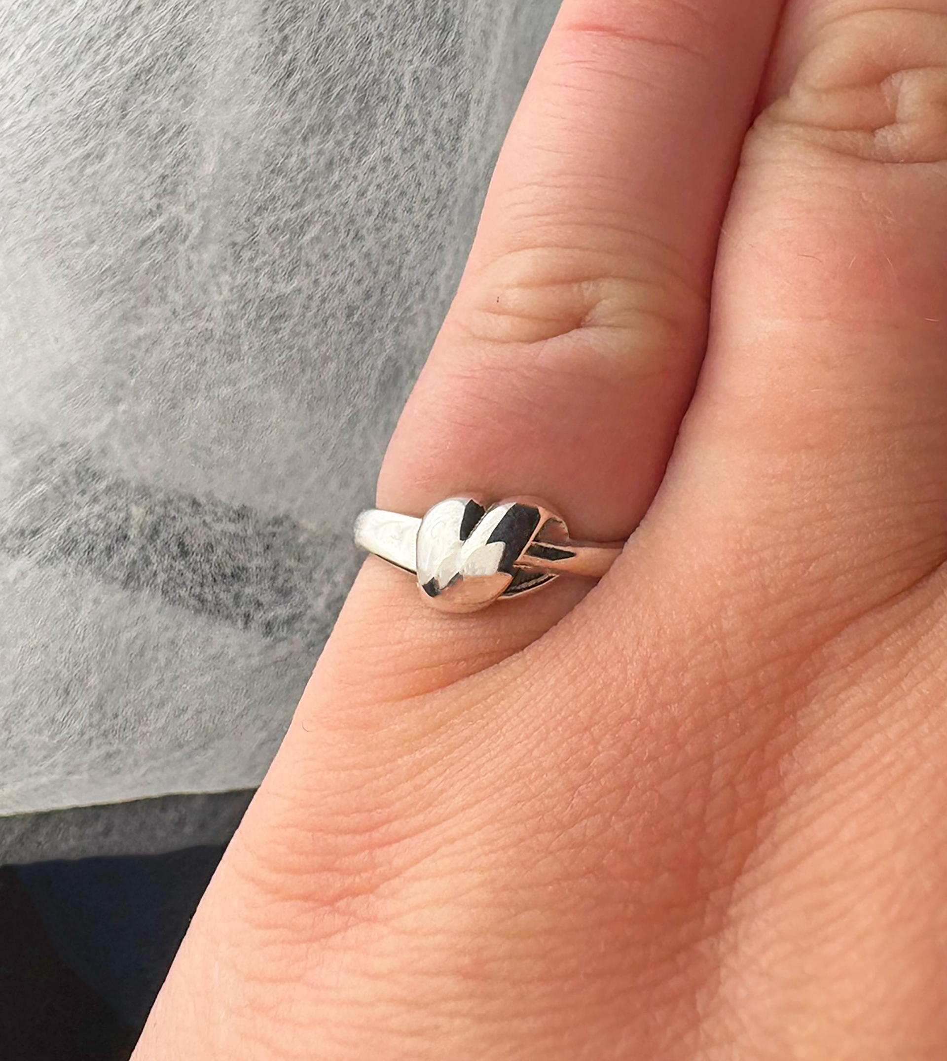 Celebrate your loved one in style with this uniquely artistic ring. A flowing band waves gently around the finger, slightly thicker on the left than the right. Where the two sizes of the band meet, a subtly shaped heart flows over them, appearing to seal them together as one. Available in both Sterling Silver and 14K gold, this piece is the perfect anniversary gift for your wife or girlfriend. Use our Ring Guide to calculate your ring size at home.