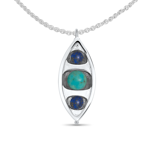 The stunning oval pendant is available in 14Ky with 14K white gold leaves. Personalize the pendant with your choice of three faceted gemstone “peas”, and pair it with our durable snake chain for a one-of-a-kind accessory.