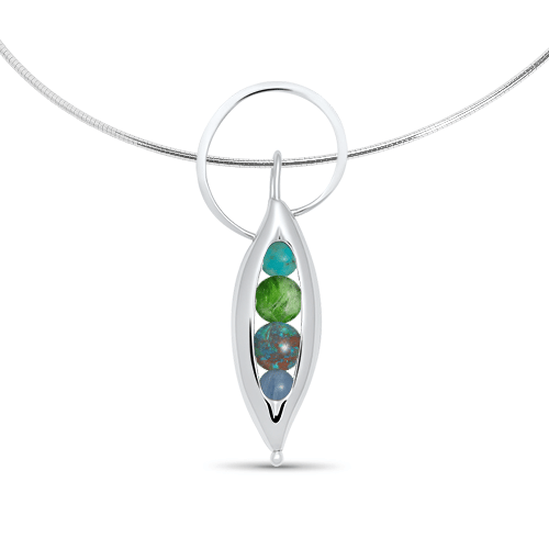 Celebrate the beauty of Maine’s Mt. Katahdin with the Halo Peapod Necklace. This design features a gracefully formed halo atop an elegant peapod-shape. Reminiscent of the trees below Mr. Katahdin, four gems rest inside the peapod. Select your chain length to complete this ode to Maine’s tallest mountain and the pine tree forests that make Maine so beautiful. Opt for Sterling Silver or 14KY Gold