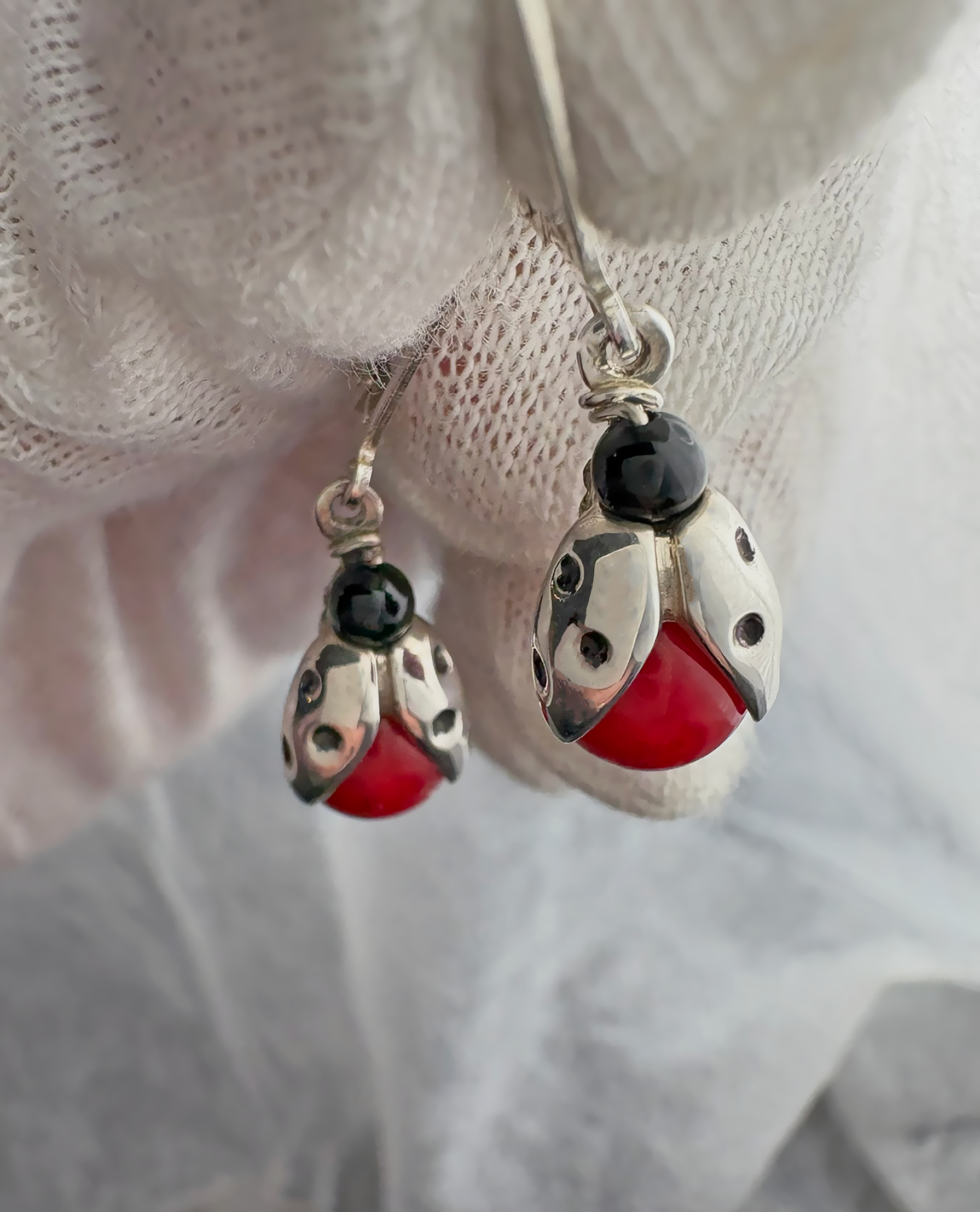 Ladybugs symbolize protection and luck in many cultures and are ubiquitous across the country every spring. Introduce some fun back into your spring wardrobe with our adorable Ladybug Peapod Earrings. Handcrafted from the finest sterling silver or 14k gold, our Ladybug Peapod Earrings are also embellished with our dashing coral and onyx “peas” to represent the insect’s coloring. Presented in an elegant dangle style, each earring is 1” in length and ¼” in width.