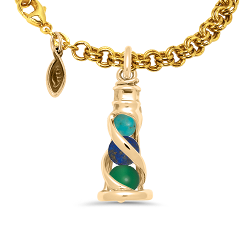 Both our small and large Lighthouse Peapod Pendants are evocative of some of Maine's most spectacular lighthouses. The swirling exterior of the pendant, which is available in both 14k gold and sterling silver, is filled with five of our emblematic “peas.” You can customize your pendant by choosing from our wide range of “peas.” For something extra special, opt for the large pendant with its moonstone Fresnel Lens.
