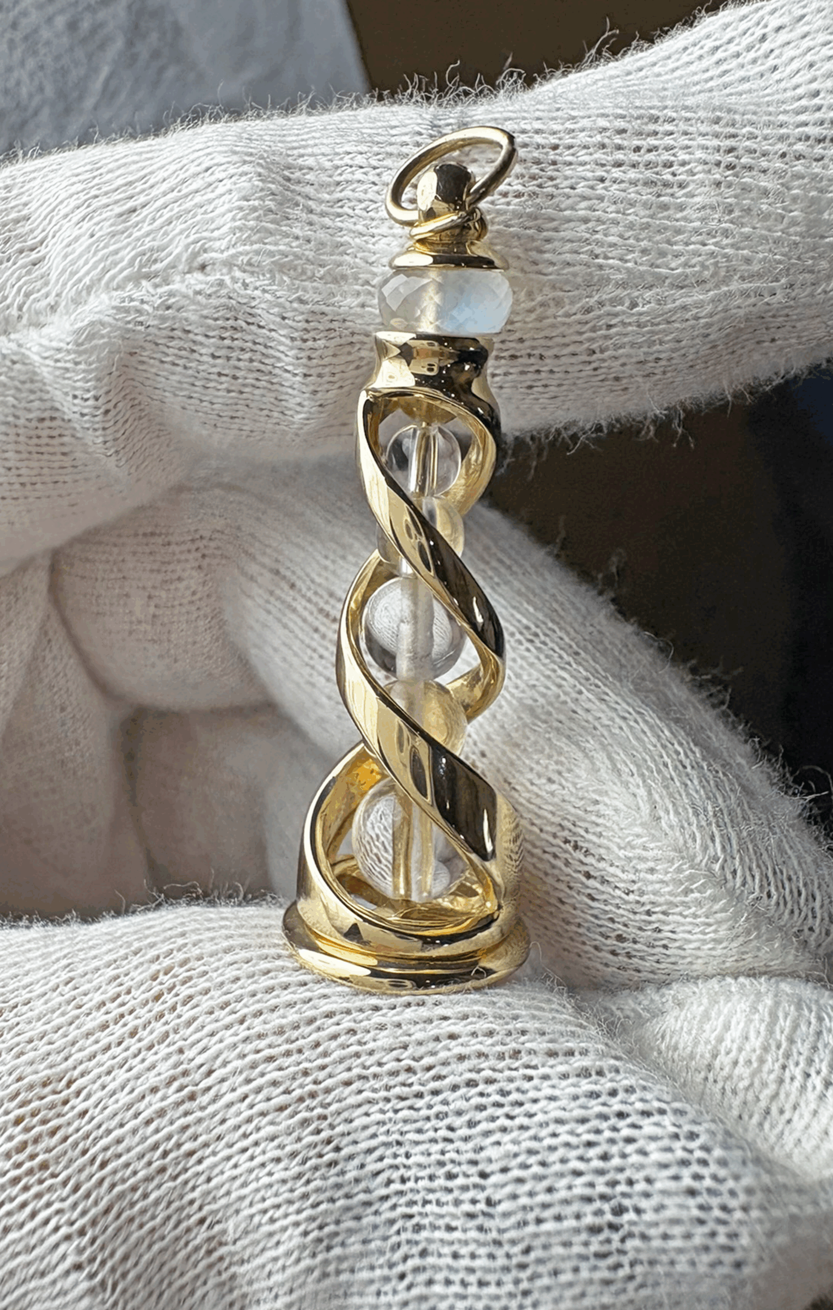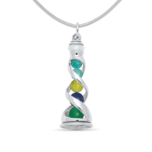 Both our small and large Lighthouse Peapod Pendants are evocative of some of Maine’s most spectacular lighthouses. The swirling exterior of the pendant, which is available in both 14k gold and sterling silver, is filled with five of our emblematic “peas.” You can customize your pendant by choosing from our wide range of “peas.” For something extra special, opt for the large pendant with its moonstone Fresnel Lens.