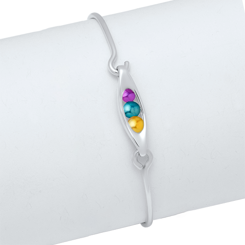 Inspired by the colorful bands seen on lobster pot buoys, this charming buoy-shaped charm holds two “peas” that can be customized to your taste and sits on a delicate sterling silver, or 14k gold, bangle. Choose between gold “peas,” seaglass, or Birthpearls® in a wide range of attractive colors, including shades that correspond with birth months so you can personalize your bracelet for your family.