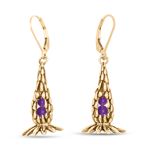Celebrating one of Maine’s most beautiful flowers, part of the “pea” family, the Lupine Peapod Necklace is a unique and unforgettable piece. The “pea” styles available include freshwater pearl, amethyst, rhodonite, and black pearl, evocative of the glorious Lupin’s subtle range of petals. The detailed pendant is available in sterling silver and 14k gold and makes a striking addition to any outfit.