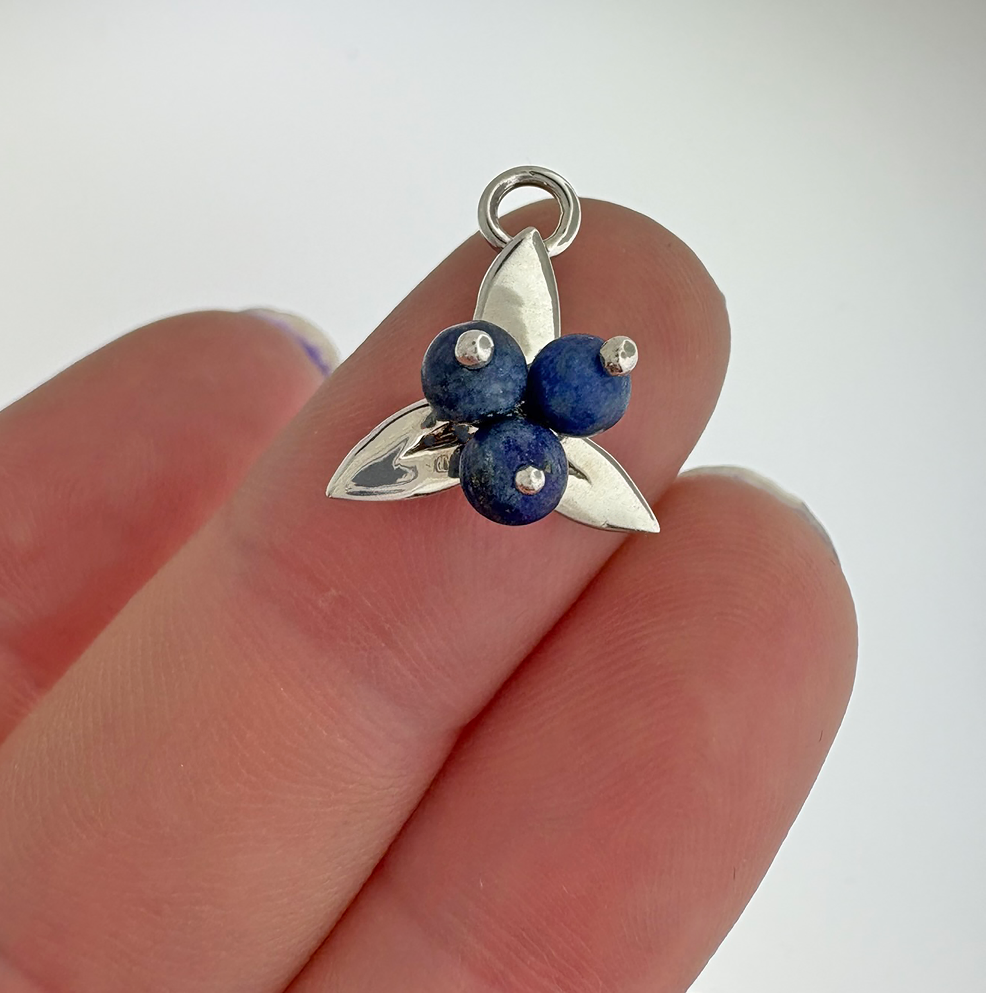 Maine’s wild blueberries are the perfect summer treat, and our Maine Blueberry Small Necklace is a refreshing addition to your wardrobe and a wonderful reminder of Maine’s bounty. With the leaves made from a delicate sterling silver, or 14k gold, and the blueberries crafted from blue lapis “peas” capped with an ornate and decorative setting that allows the pendant to sparkle in the sunlight. You can complement by adding our simple yet stylish box chain, choosing from lengths including 16”, 18”, 20”, 22″ and 24”.