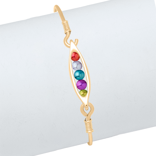 This elegant Mother’s Peapod® bracelet would make a meaningful gift for any mother. The peapod-shaped bracelet (available in 14 karat gold and sterling silver) can be set with between one and six freshwater Birthpearls® or natural gemstone ‘peas’ to represent each member of your family. The freshwater pearls are custom dyed to match each month’s birthstone. As your family grows, you can upgrade your handmade bracelet to include more stunning colored Birthpearls® or gemstones.