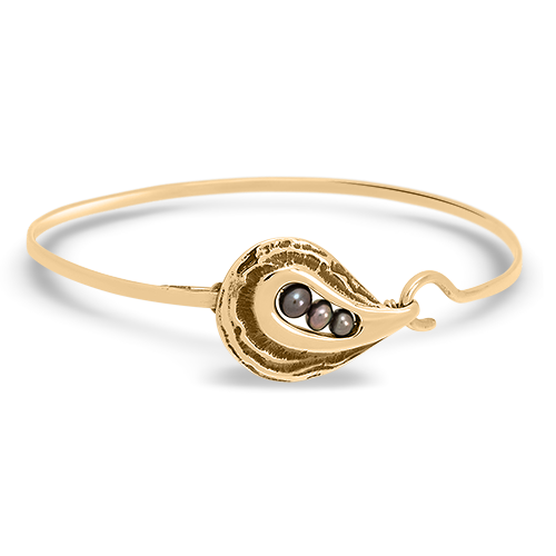 For those who love the ocean life, our Oyster Shell Peapod Bracelet is the perfect addition to your jewelry collection. Complete with three of our iconic and iridescent black pearls, which sit snugly in the center of a sterling silver design shaped like an oyster. This stunning bracelet sparkles as bright as the ocean in the moonlight and is available in small, medium, and large.