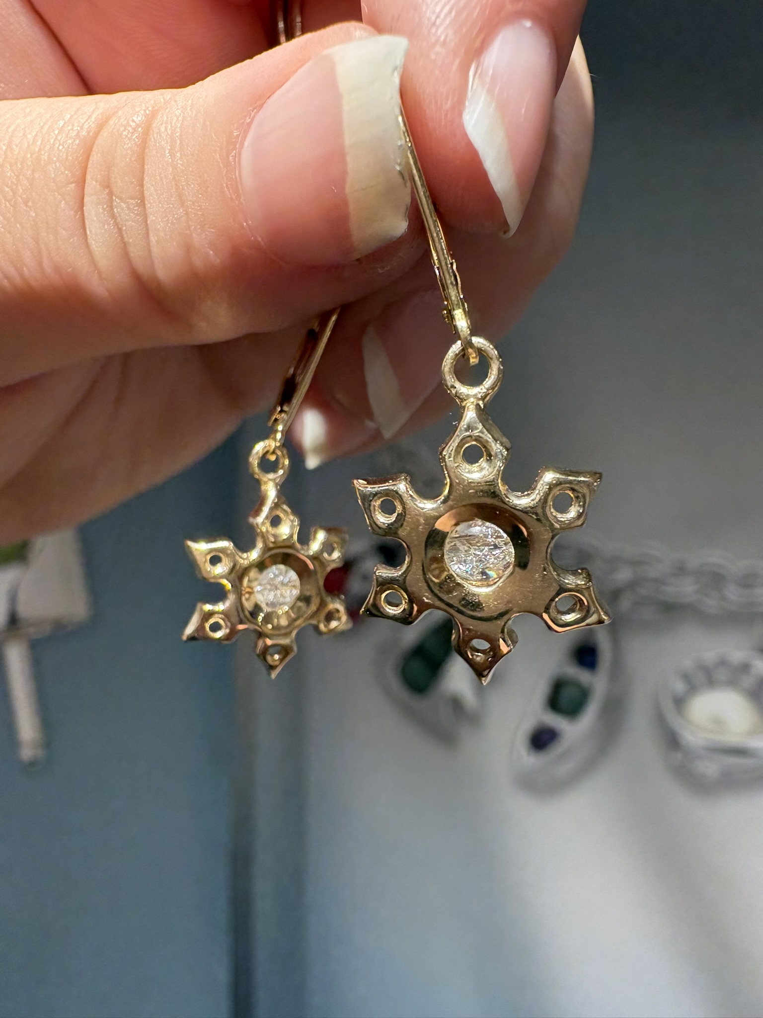 Glitter this winter with our stunning, delicate Peapod Snowflake Earrings. These earrings are handcrafted from 925 sterling silver or 14ky yellow gold. The center of the snowflake is set with your choice of a white pearl or our sparkle quartz gemstone “pea.” Wear this dazzling pair of earrings with other pieces in the Peapod Snowflake collection for a fabulous way to accessorize your winter wardrobe.