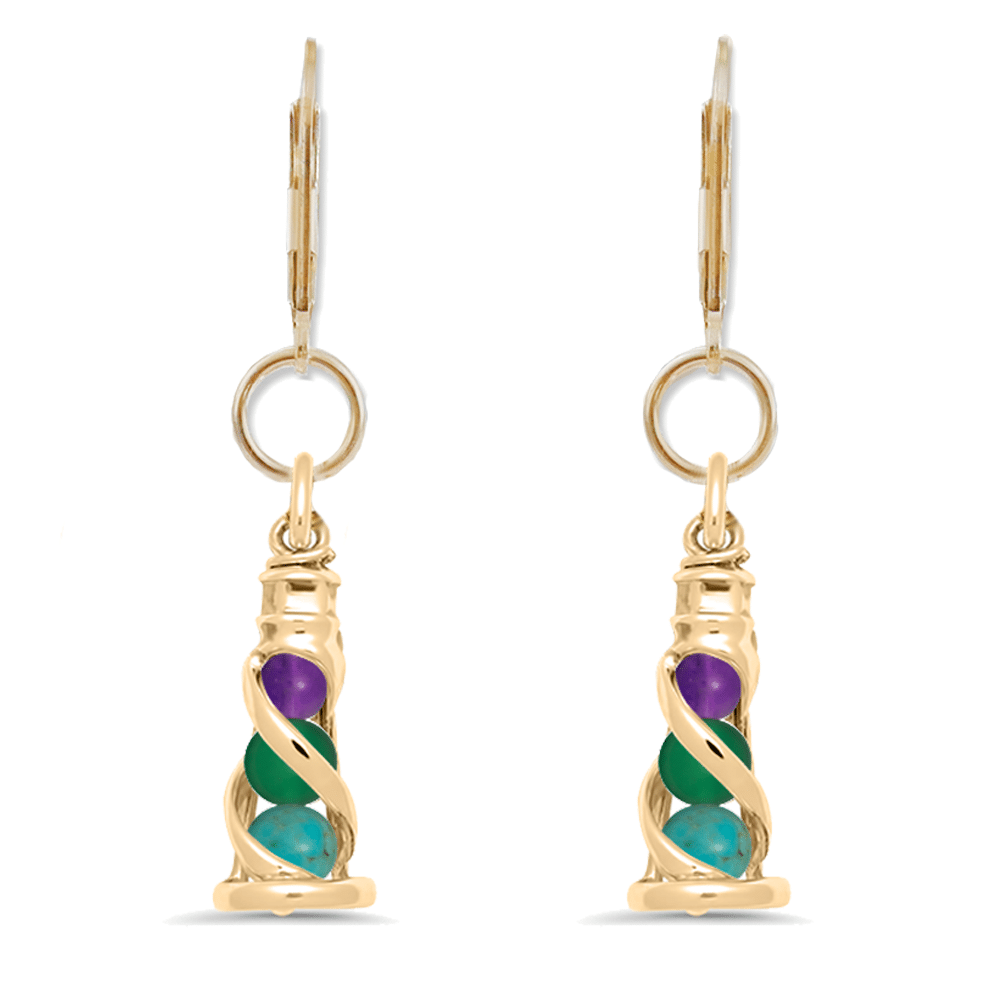 We’ve taken our Lighthouse Charm and transformed them into petite earrings! From Pemaquid Point in Pemaquid to Nubble Lighthouse in York, lighthouses are fixtures of the Maine coastline. The swirling exterior of each earring, which are available in both 14k gold and sterling silver, is filled with three of our emblematic “peas.” You can customize your earrings by choosing from our wide range of “peas,” including 14k gold, blue lapis, white pearl, black onyx, and malachite.