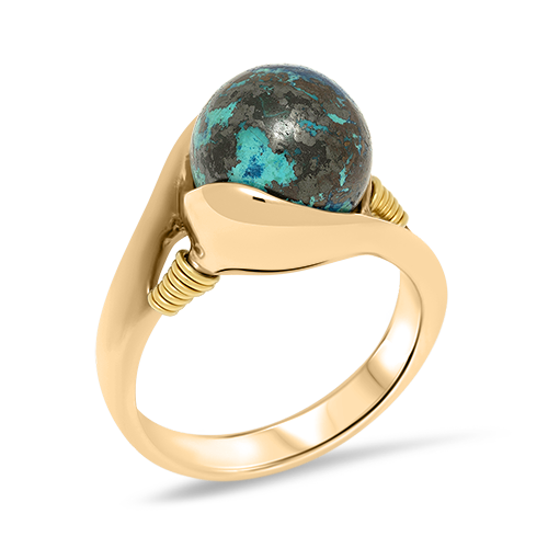 Our World Peace Peapod Ring is the perfect way to make a style statement while showing your love and appreciation for the planet you live on. The 10mm colorful chrysocolla stone represents earth and is set in an oversized sterling silver or 14k gold ring, wired with luscious 18k yellow gold so that the world spins each time you place it on your finger. Handcrafted to perfection, this gorgeous one-of-a-kind piece is available in sizes ranging from 5-10. Use our Ring Guide to calculate your ring size at home.