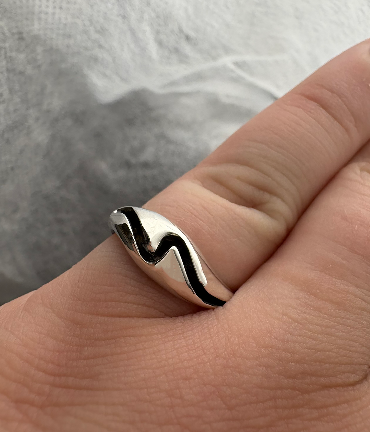 An evolution of our Split Dome Ring, the Squiggle Dome Ring is handcrafted in Maine from premium 925 sterling silver or 14k gold. The ring is ¼” wide and has a split dome in a curved pattern to provide extra character. The thick dome walls are durable and resistant to dents so you can enjoy the piece every day. This minimalist ring is available in sizes ranging from 4.5-10. Use our Ring Guide to calculate your ring size at home.