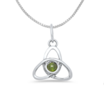 All of our Celtic Knots feature a stunning chrome diopside pea in the center. This vibrant green gem is the perfect way to add a pop of color to any outfit. Shop today and find your new favorite accessory!