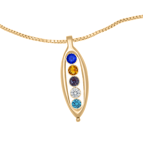 Personalize a meaningful gift for your mother, daughter, or grandmother with our 5 Peas in a Pod Necklace. Our local Maine jewelry comes in 14K yellow gold and 925 sterling silver, making our Peapod necklaces a thoughtful gift for any occasion.